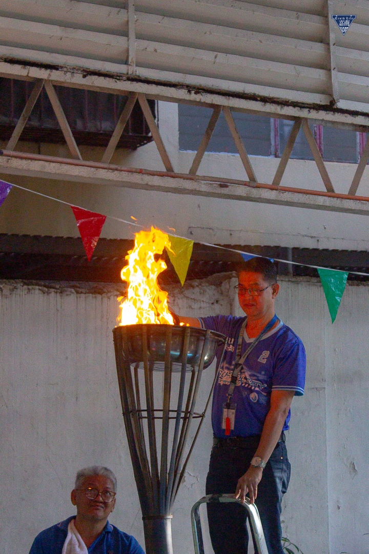 Excitement leveled up as the batch representatives were called for the torch-bearing ceremony. Assisted by their advisers, the students paraded the torch with smiles and pride. Two Student City Organization (SCO) officers, Ms. Imelda Comia and Ms. Edna Batalla also joined the ceremony. Then, SCO Adviser Mr. Andres Ilocto lit the sports fest grand torch.